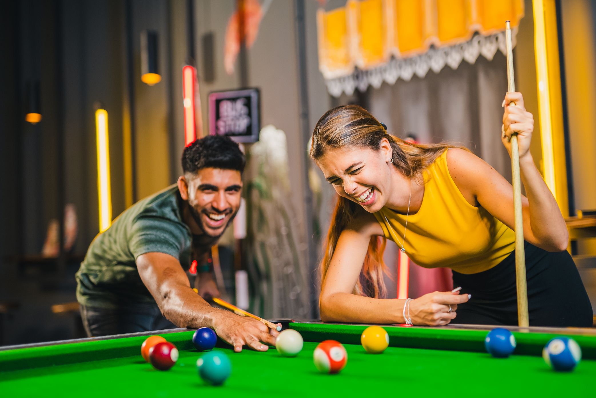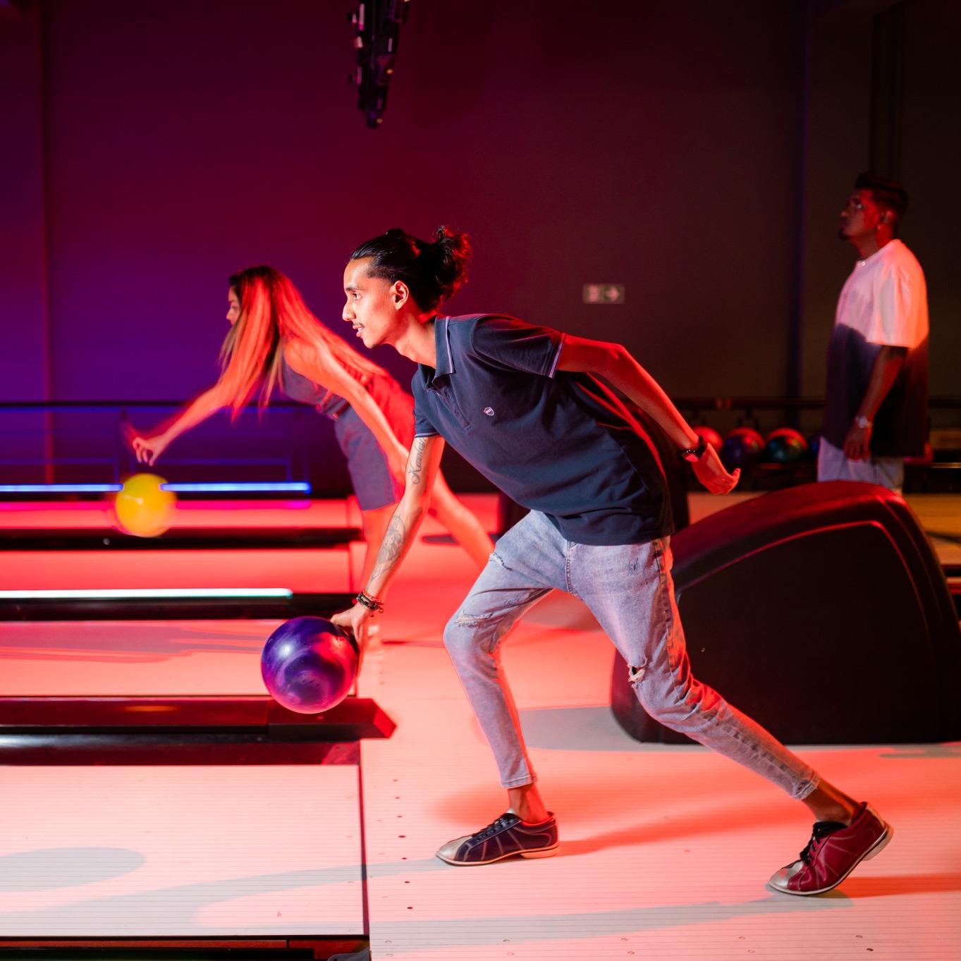 Eight bowling lanes with lounge seating and kid-friendly amenities available.